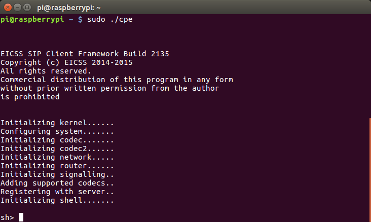 We are now ready to run the firmware. The firmware file name is cpe and should be run with sudo. The firmware assumes that configuration file named cpe.conf resides in the same folder the firmware is being executed from.